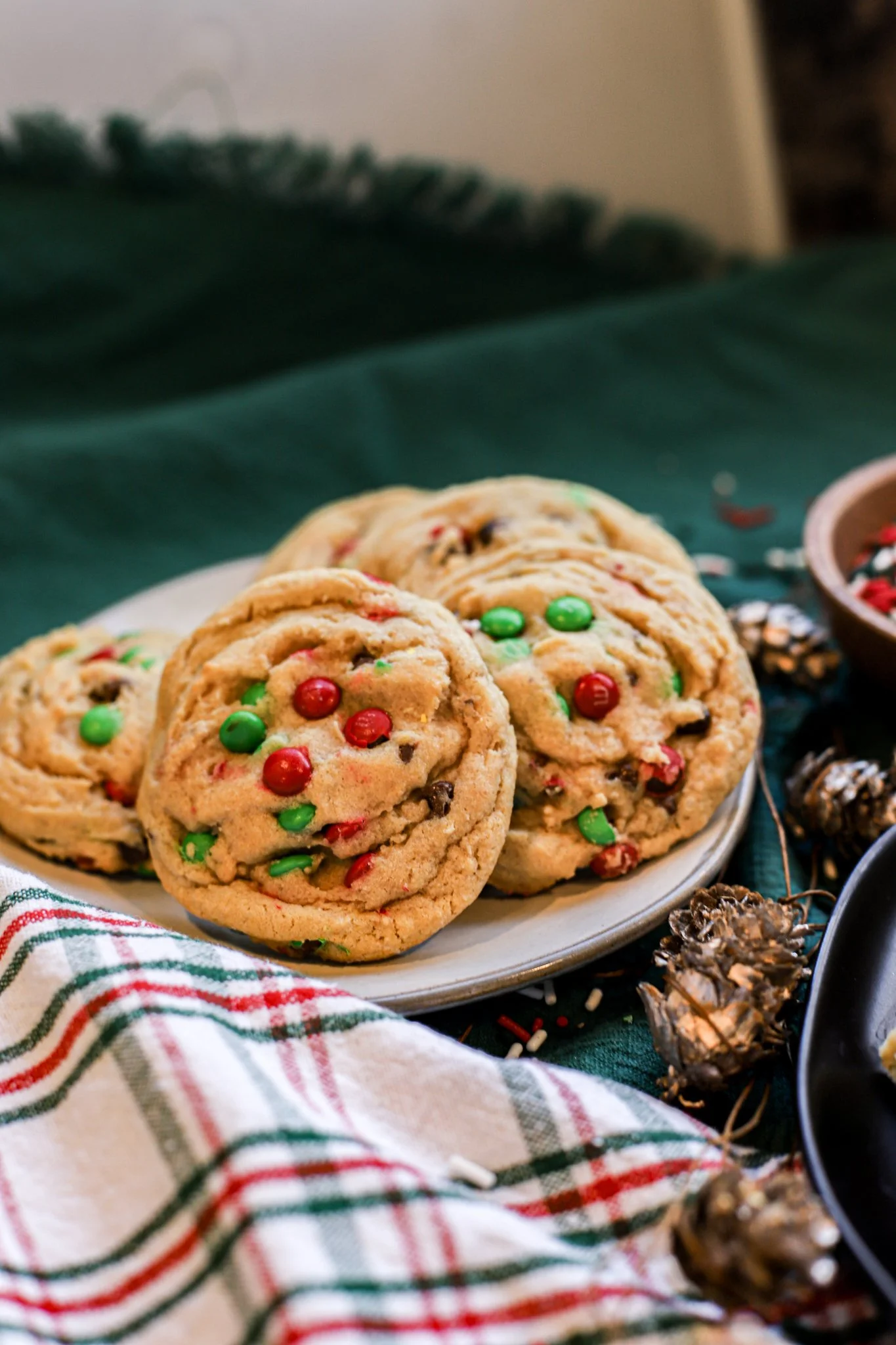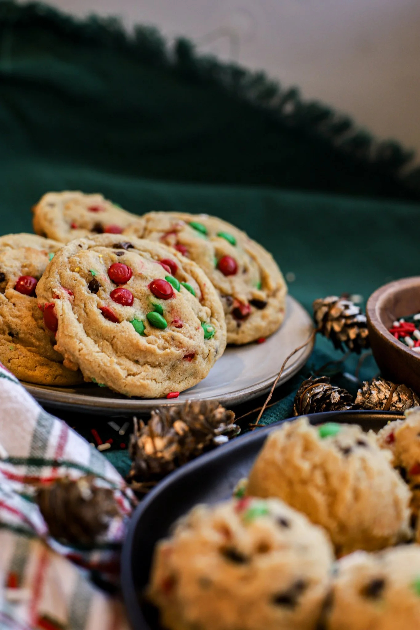 This recipe is basically the same as my chocolate chip cookie recipe. But somehow seems so much better with M&Ms. I’ve worked really hard on coming up with a cookie dough base that I love, and it’s what I use whenever I want to create a new flavor. The combination of a little cornstarch and chilling make the perfect cookie…in my opinion.